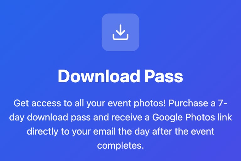 The download pass for this production will be sent out via email on the Sunday, following the final event presentation. Please register your information below so that you will receive the Google Photo Share Link with the ability to Download ALL images within the 7 Day open access window.
